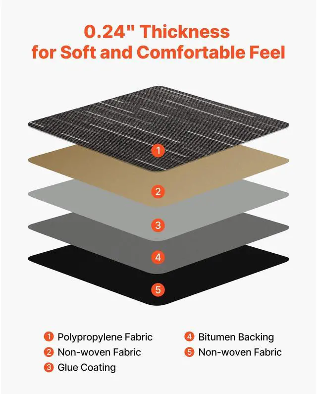 VEVOR Carpet Tiles Reusable 24x24 inch, 24 PCS Modular Carpet Square Rug, Commercial Floor Soft Padded for Seamless Cover 96sq.ft, Easy DIY Replacement for Living Room Bedroom Office Indoor,Gray