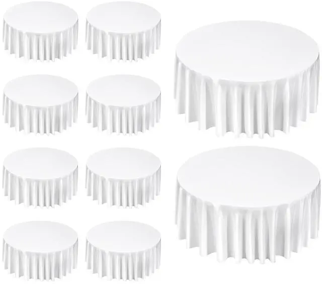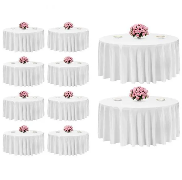 VEVOR White Round Tablecloths 10 Pack, 132 Inches in Diameter, Stain- & Wrinkle- Resistant, Machine Washable Table Clothes, Polyester Fabric Table Covers for Wedding, Party, Banquet, Formal Events