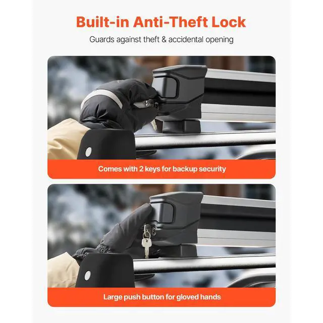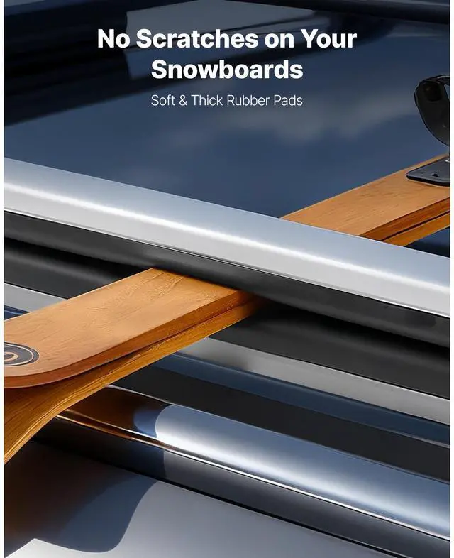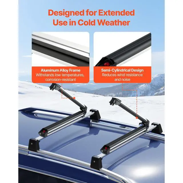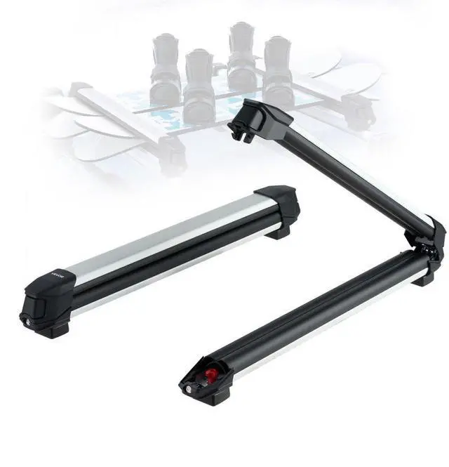 VEVOR Ski & Snowboard Roof Rack, Carry up to 6 Pairs of Skis or 4 Snowboards, 2 PCS Aluminum Universal Car Roof Rack with Lock & Rubber Padding, Carrier for Fishing Rod, Fit Most Slotted Crossbars