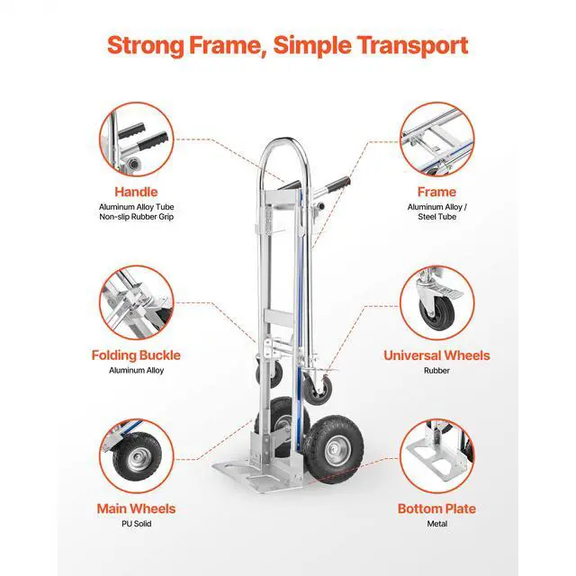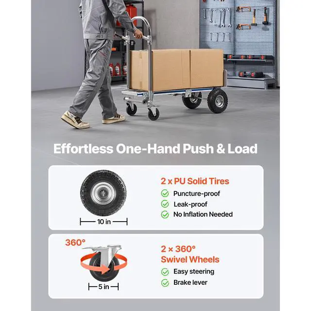 VEVOR 2 in 1 Hand Truck, 1000 lbs Load Capacity for 4-Wheel Mode, Convertible Hand Truck Dolly with Non-Slip Handle & Wheels, Portable Trolley Dolly for Moving Home, Office, Warehouse, Supermarket