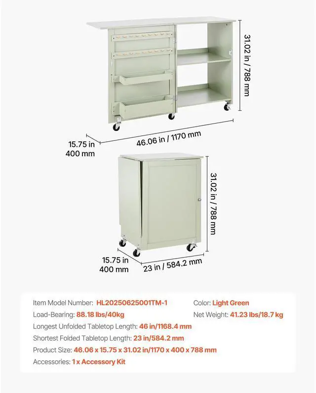 Product Size: 46.06 x 15.75 x 31.02 in/1170 x 400 x 788 mm