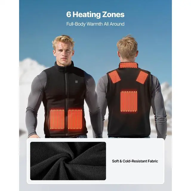 VEVOR Heated Vest, Men Electric Heating Vest with 16000 mAh Battery Pack, 6 Heating Zones Lightweight Rechargeable Winter-Vest with 3 Levels, for Outdoor Hiking Camping Fishing Skiing, Size XL