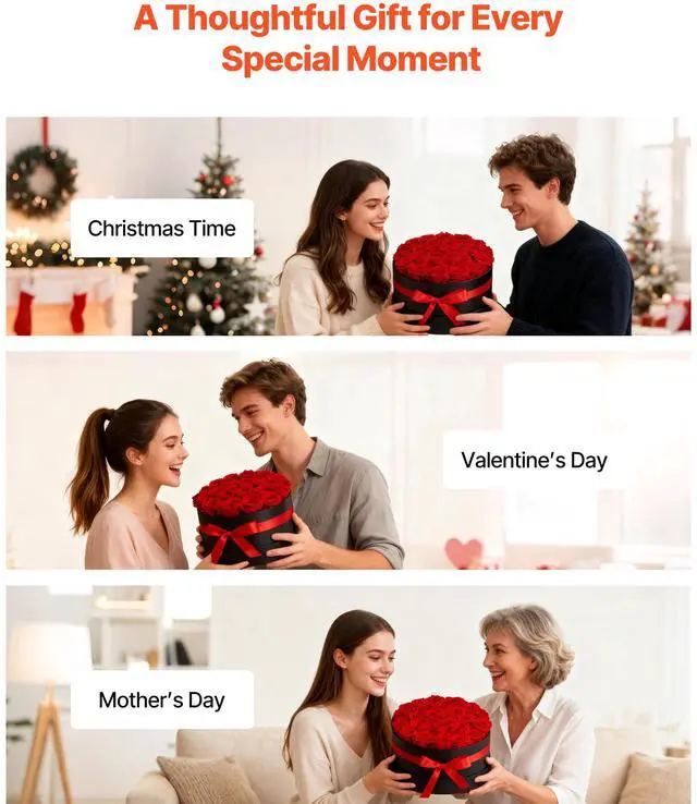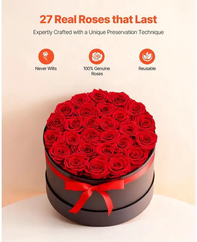 VEVOR Forever Flowers, 27 Preserved Roses in a Box, Eternal Flowers Immortal Bouquet Birthday Present for Delivery Prime Women Her Wife Mothers, Anniversary, Valentine's Day,Christmas, Red