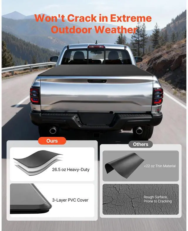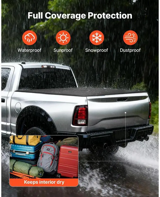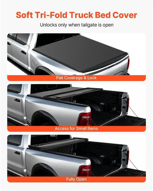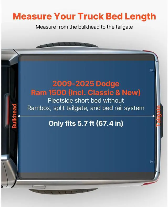 VEVOR Soft Tri-Fold Truck Bed Tonneau Cover, Compatible with 2009-2025 Dodge Ram 1500 (Incl. Classic & New) 5.7 ft (67.4 in) Bed, Fleetside Without Rambox, Split Tailgate, and Track System, Waterproof