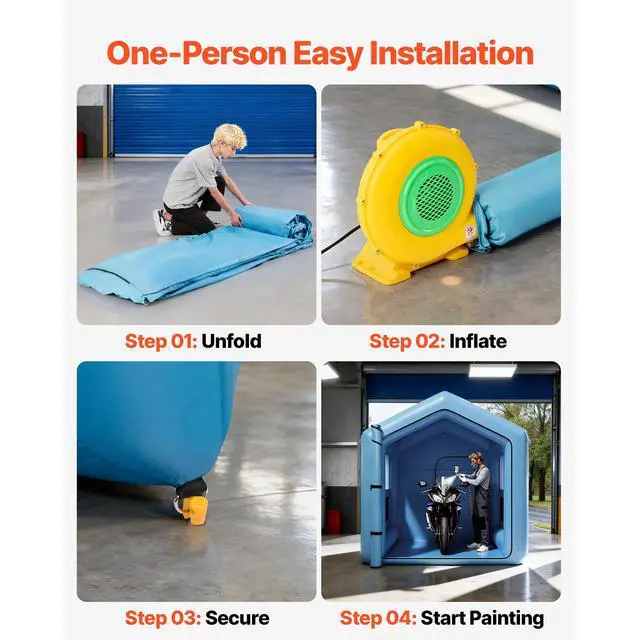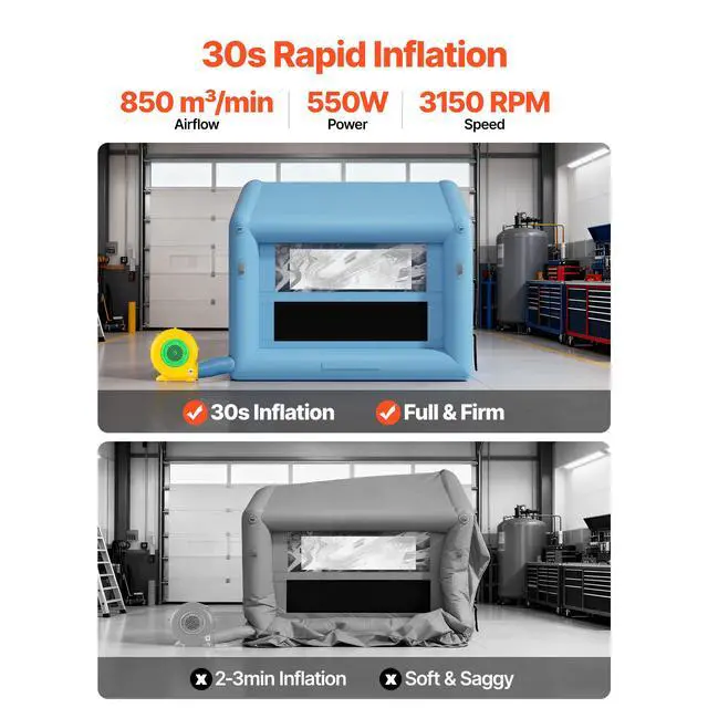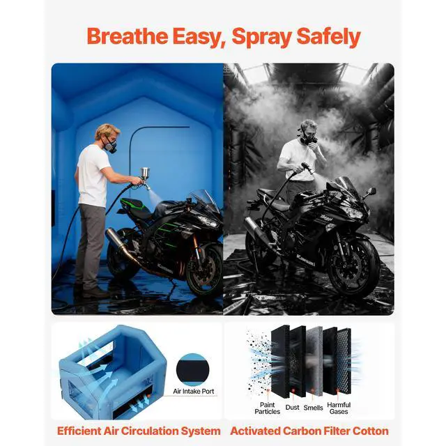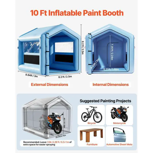VEVOR Inflatable Paint Booth, 9.84 x 8.2 x 8.2 ft, Inflatable Spray Booth with 550W Powerful Blower and Air Filter System, Triangular Roof, for Painting Bicycle, Motorcycle, Automotive Sheet Metal