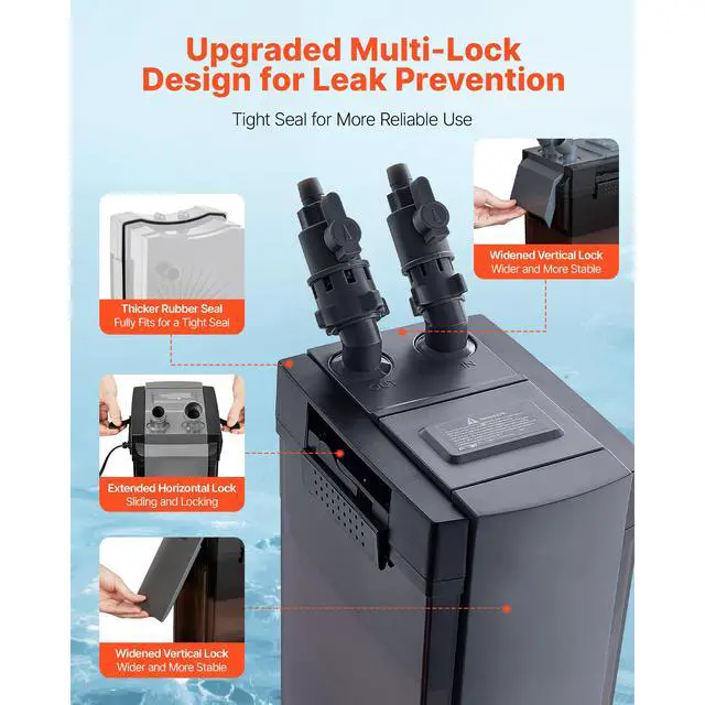 VEVOR 264GPH Canister Filter, 2-Stage External Aquarium Filter with Powerful Pump, Quite Water Circulation Cleaning Machine with Media for Fish Tanks and Aquariums Up to 75 Gallons, for Freshwater