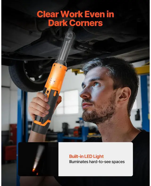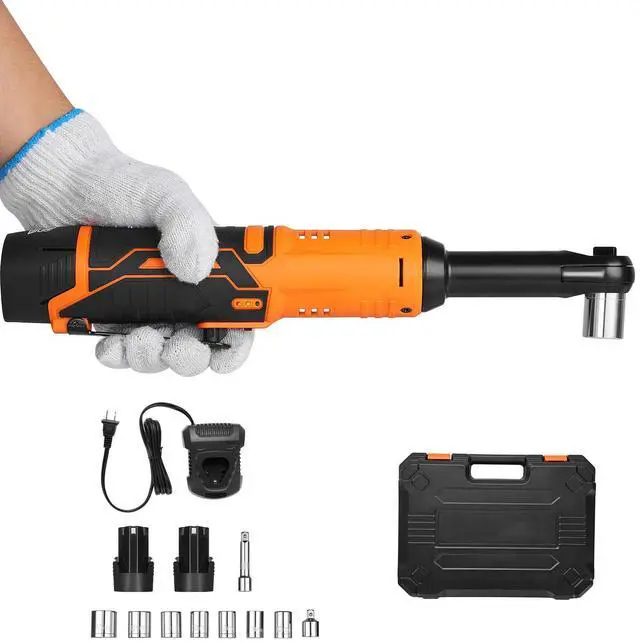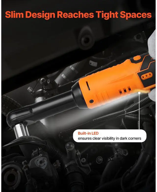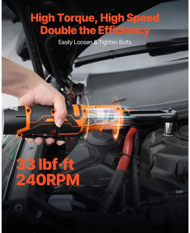 VEVOR Cordless Ratchet Wrench, 3/8 inch Drive, 240 RPM, up to 33 ft-lbs of Torque, Extended Battery Powered Electric Ratchet Wrench Set with Two Batteries, Charger, Sockets, Adaptor and Extension Bar