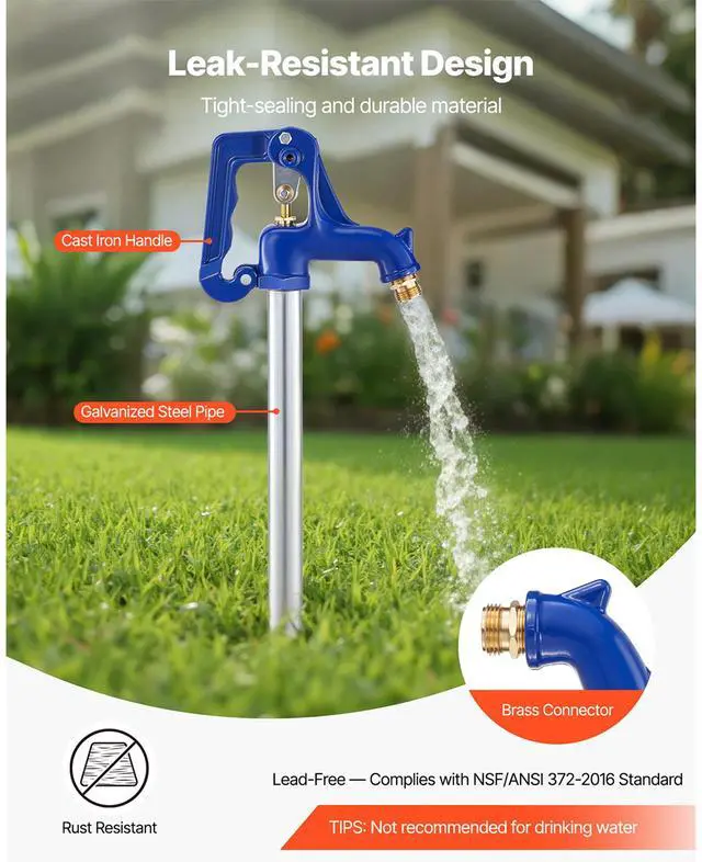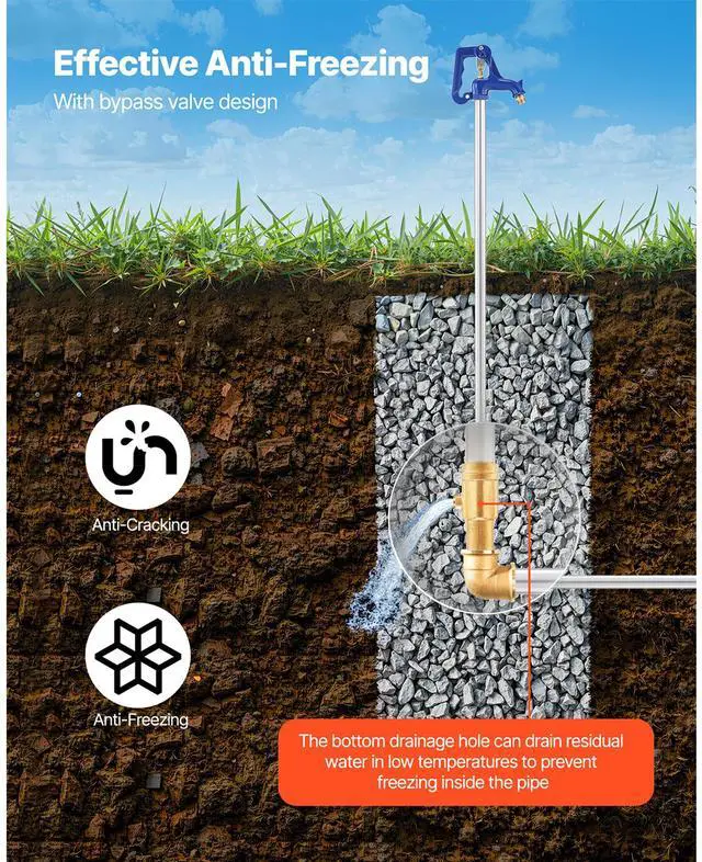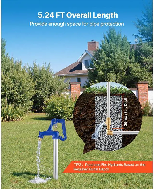 VEVOR Frost Proof Yard Hydrant, 5.24FT Freeze-Proof Outdoor Faucet with 36" Bury Depth, 3/4" NPT Pipe Connection & 3/4" NH Hose Coupling, No Lead Freezeless Hydrant for Yard Garden Farm Irrigation