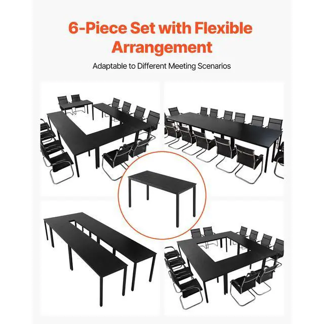 VEVOR Conference Table, Set of 6, 4.5 ft Office Meeting Table for 16 Person, Flexible Combination Desk Set, Modern Rectangle Meeting Desk with Metal Legs for Office, Conference Room, Easy Assembly