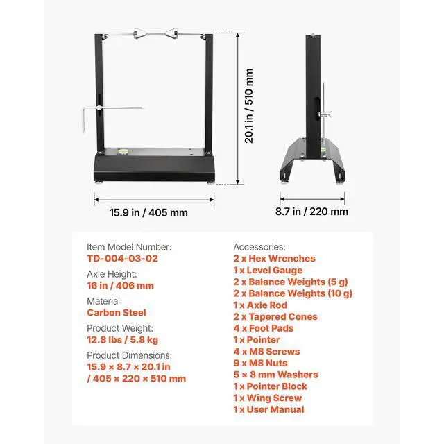 Item Model Number: TD-004-03-02,Product Weight: 12.8 lbs/5.8 kg,Material: Carbon Steel,Product Dimensions: 15.9 x 8.7 x 20.1 in/405 x 220 x 510 mm,Axle Height: 16 in/406 mm