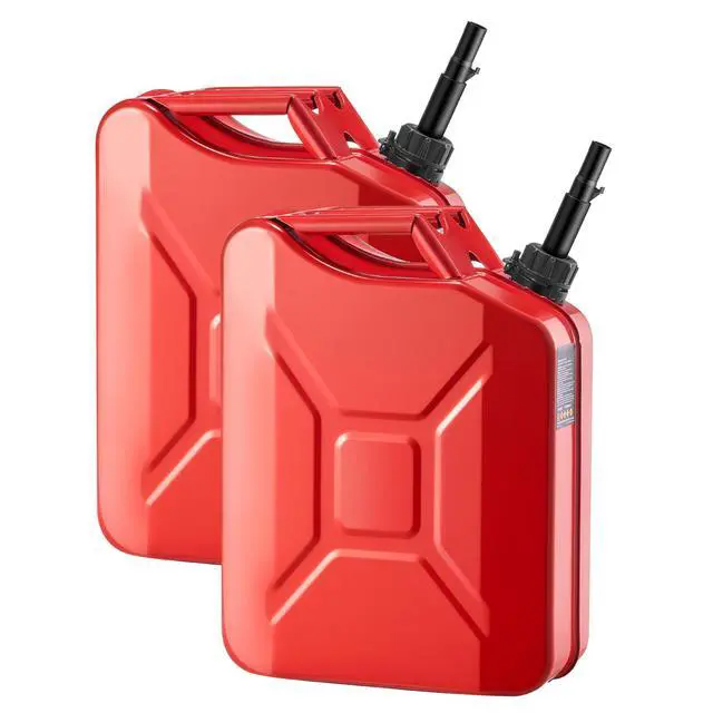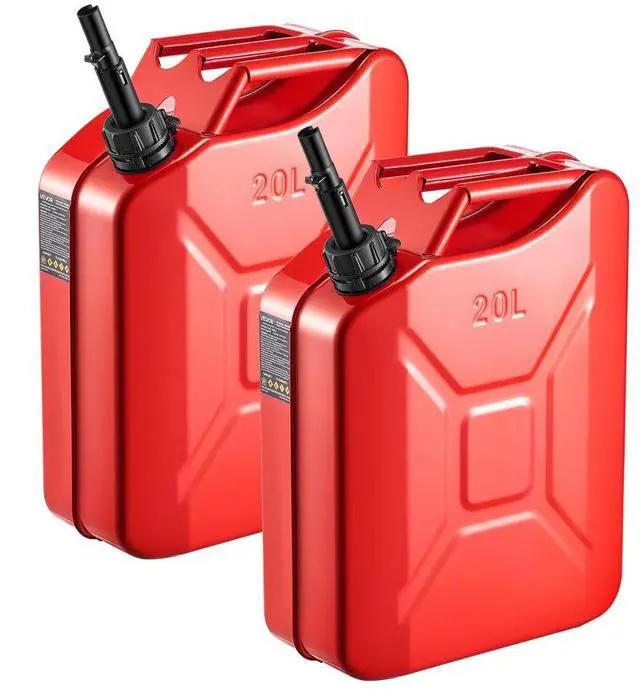 VEVOR Metal Fuel Container, 5.3 Gallon, Fuel Jerry Can with Spout and Comfort Handle, 6 L/min Max Flow Rate, Leakproof & Corrosion-resistant Metal Gas Tank Most Cars Motorcycle ATV UTV, Red, 2 Packs