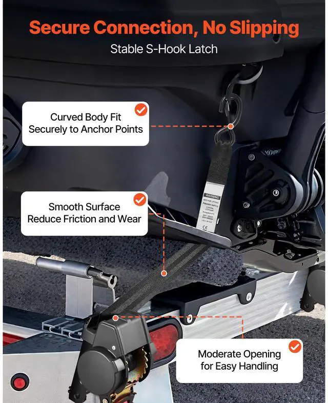 VEVOR Wheel Chock Tie-Down Kit, Fixed Trailer Tie Down Strap, Car Tie Down Kit with S-Hook, Break Strength 1649 lbs & Working Load 550 lbs Motorcycle Tie-Down System for Trailers, Boats, Snowmobiles