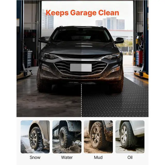 VEVOR Garage Floor Roll, 4 x 10 ft Garage Flooring Mat, 2.2 mm Thickened PVC Diamond Plate Floor Protector Mat with Double-sided Tape, Non-Slip, Easy to Clean for Warehouse, Gyms, Trailer, Black