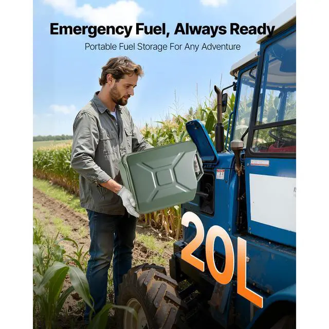 VEVOR Metal Fuel Container, 5.3 Gallon, Fuel Jerry Can with Spout and Comfort Handle, 6 L/min Max Flow Rate, Leakproof & Corrosion-resistant Metal Gas Tank Most Cars Motorcycle ATV UTV, Green
