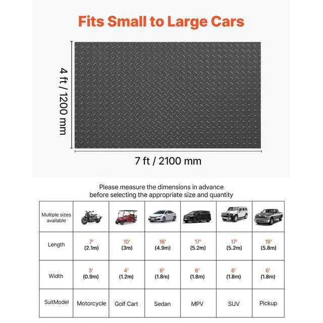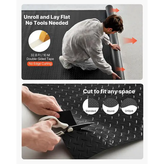 VEVOR Garage Floor Roll, 4 x 7 ft Garage Flooring Mat, 2.2 mm Thickened PVC Diamond Plate Floor Protector Mat with Double-sided Tape, Non-Slip, Easy to Clean for Warehouse, Gyms, Trailer, Black