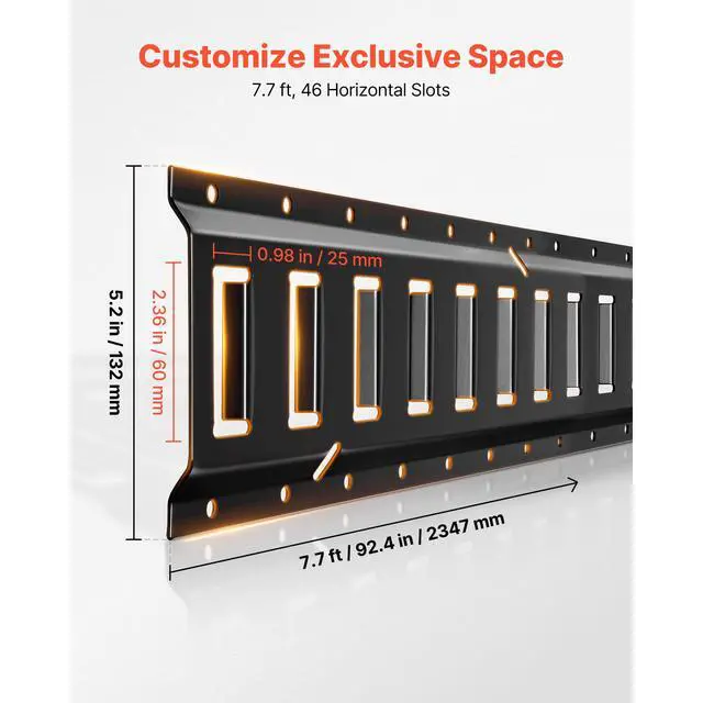 Rail Length: 7.7 ft/2346 mm,Load Capacity: 2000 lbs/909 kg,Number of Rails: 4 pieces,Number of Anchor Points: 46 pieces,Item Model Number: JC25-ETR-7.7FT,Material: 45# Steel,Net Weight: 37.84 lbs/21.7 kg