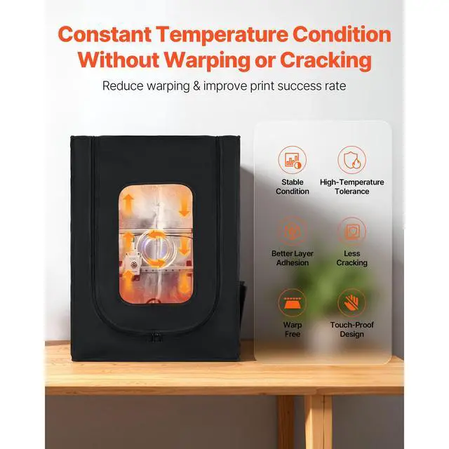 VEVOR 3D Printer Enclosure, Dustproof Waterproof Oxford Cloth 3D Printer Tent, Constant Temperature Protective Case with LED Lighting, Compatible with Creality/ELEGOO/Anycubic Multiple Popular Models