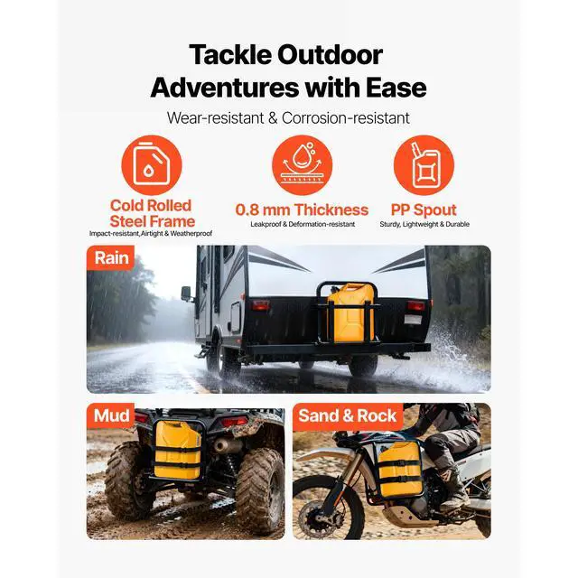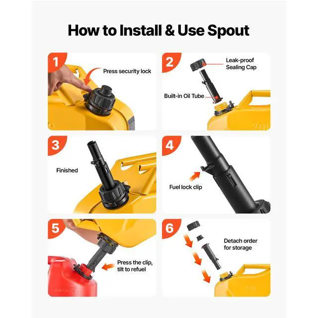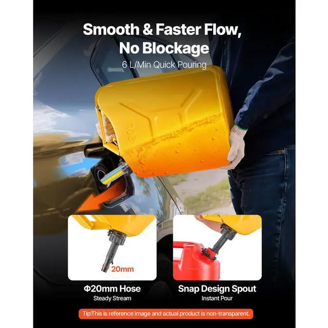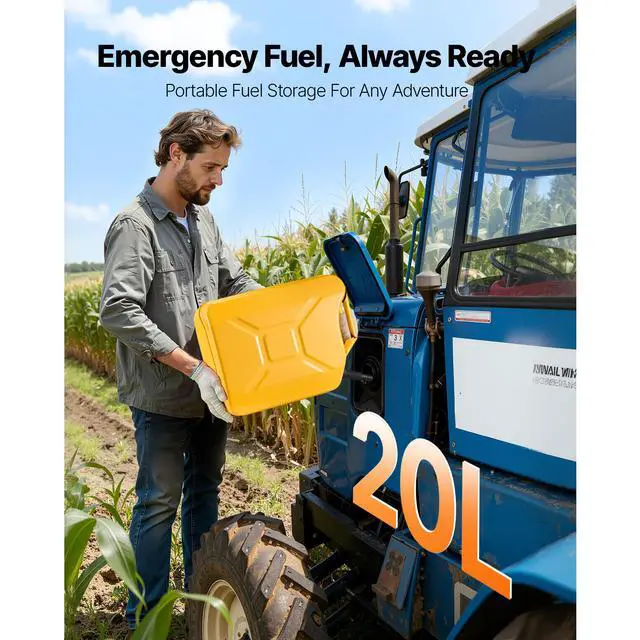 VEVOR Metal Fuel Container, 5.3 Gallon, Fuel Jerry Can with Spout and Comfort Handle, 6 L/min Max Flow Rate, Leakproof & Corrosion-resistant Metal Gas Tank Most Cars Motorcycle ATV UTV, Yellow