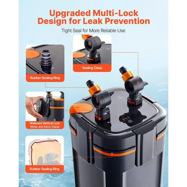 VEVOR 224.5GPH Canister Filter, 2-Stage External Aquarium Filter with Timed Light, Powerful Pump, Water Circulation Cleaning with Media for Large Fish Tanks & Aquariums Up to 55 Gallons, Freshwater
