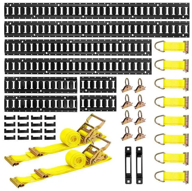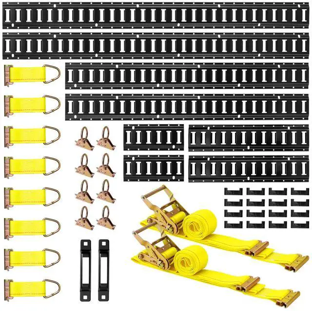 VEVOR E-Track Tie-Down Rail Kit, 8 Pack (5ft+4ft+2ft+1ft) E Track Rails, 36 Pcs Includes 2 Ratchet Straps & 8 O-Rings & 8 Tie-Offs with D-Ring & 2 Single Slots & 16 End Caps, Fit for Vans Trailers