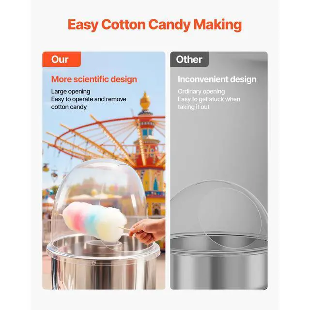 VEVOR Cotton Candy Machine Cover, Transparent Acrylic Dome Bubble Shield, Cotton Candy Machine Bubble Shield Compatible with 15inch Cottons Candies Machines Bowl for Party, Shops, Bottom Groove Design