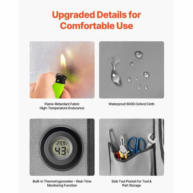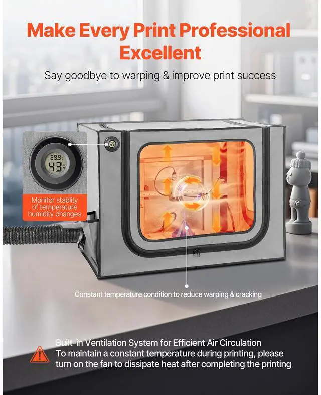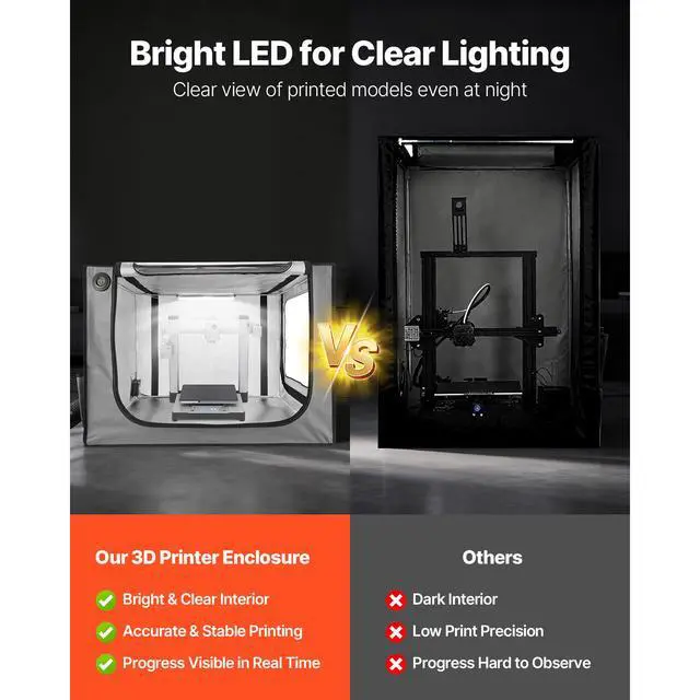 VEVOR 3D Printer Enclosure with Ventilation, Dustproof Waterproof Large Size 600D Oxford Cloth 3D Printer Tent, Constant Temperature Protective Case with LED, Designed for Bambu Lab A1 Combo, Grey