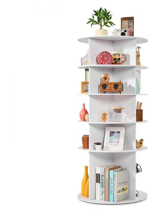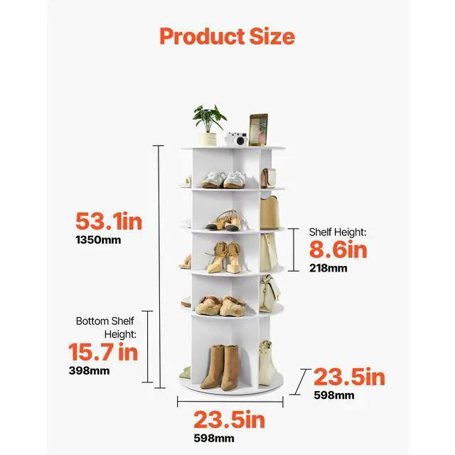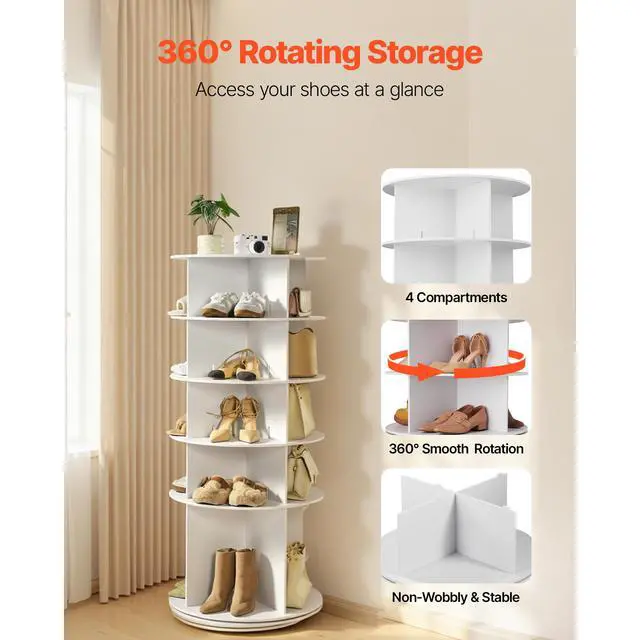 VEVOR 5 Tiers Rotating Shoe Rack Tower, 360° Spinning Shoe Rack, Revolving Storage Round Carousel Display, Freestanding Lazy Susan Organizer Display for Bedroom, Living Room, Entryway, Closet, White