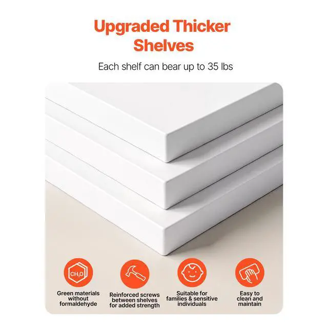 Number of Shelves: 5 Shelves, 4 Compartments,Weight Capacity: 35.27 lbs/16 kg (Per Shelf),Color: White,Item Model Number: OY-XZXJ-06-5,Product Net Weight: 32.19 lbs/14.6 kg,Shoe Capacity: 20 Pairs,Bottom Shelf Height: 15.7 in/398 mm,Shelf Height: 8.6 in/218 mm,Product Dimensions: 23.5 x 23.5 x 53.1 in/598 x 598 x 1350 mm,Main Material: PVC Wood-Plastic Board