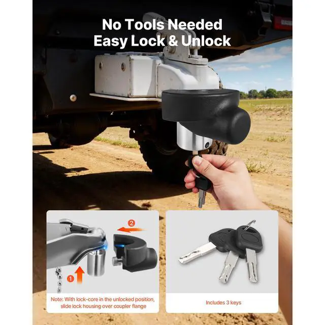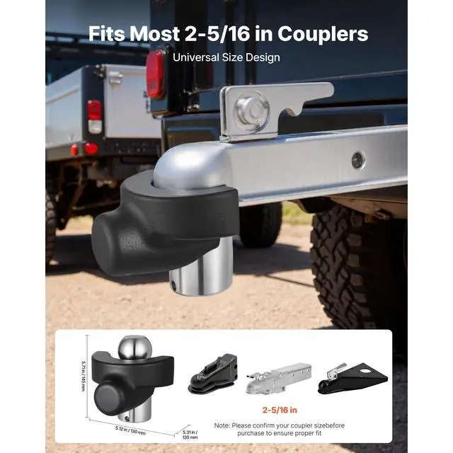VEVOR Trailer Hitch Lock, Compatible with 2-5/16 in Couplers, Heavy-Duty Anti-Theft Trailer Ball Lock with 3 Keys, Prying-Resistant & Impact-Resistant, Fits for RVs, Boats, Off-Road Vehicles, Trailers
