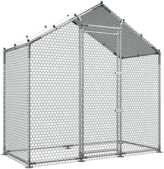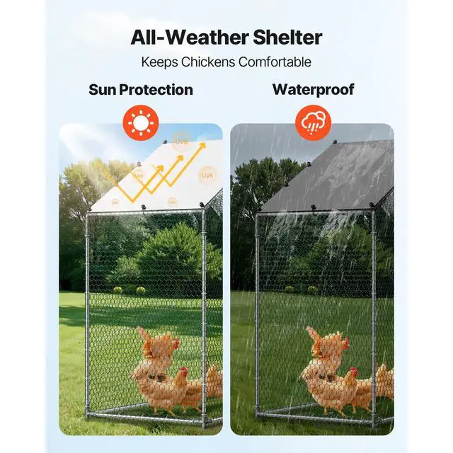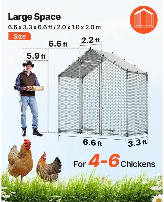 VEVOR Large Metal Chicken Coop,6.6 x 3.3 x 6.6 ft, Walk-in Chicken Run House with Waterproof Cover & Sturdy Frame, Spire Roof Poultry Cage Duck Pen for Rabbit Hen Goose Outdoor Backyard Farm Use