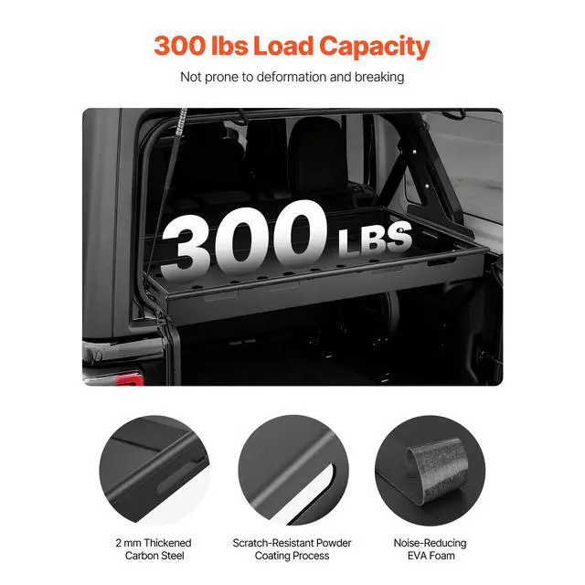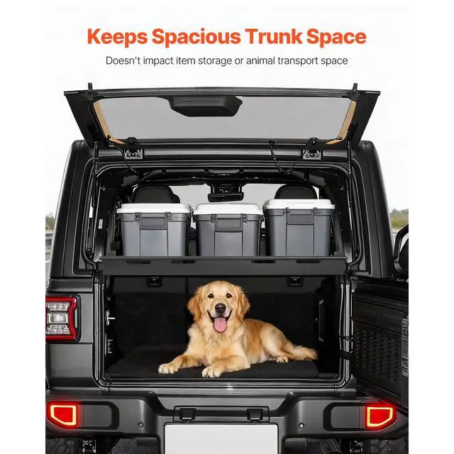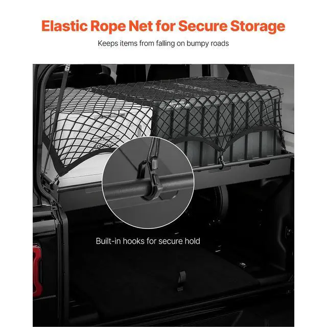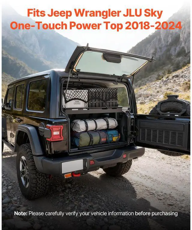 VEVOR Rear Trunk Cargo Rack, for 2018-2024 Jeep Wrangler JLU Sky One-Touch Power Top, 300 lbs, Carbon Steel Basket Tray Interior Storage Luggage Carrier with Net, Shelf Stand Organizer for Camping