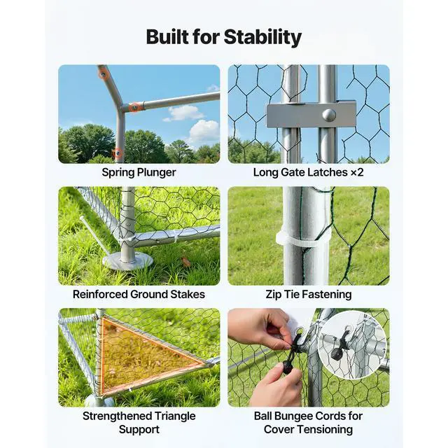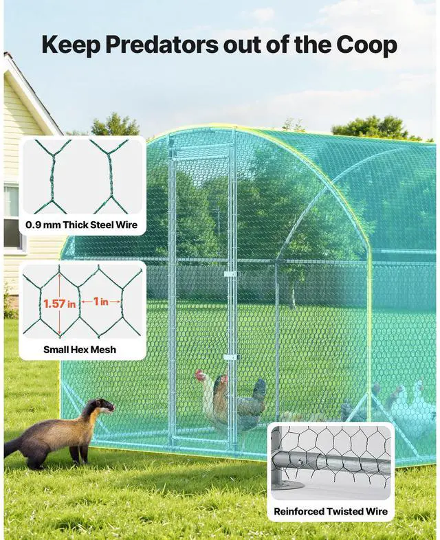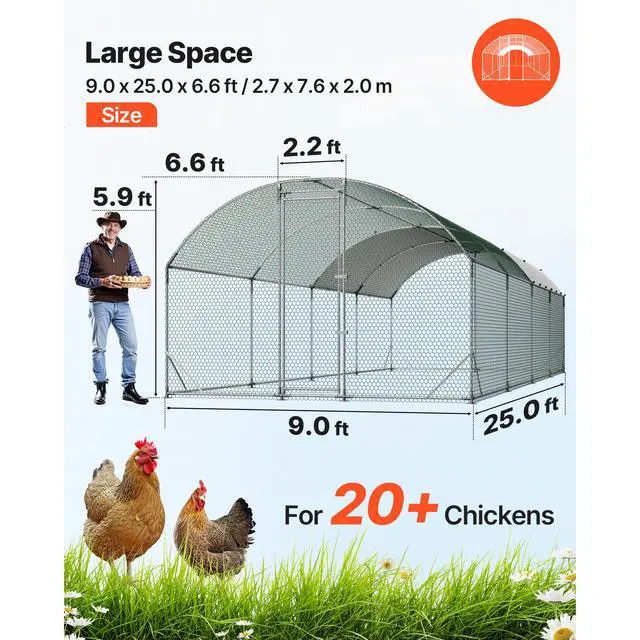 VEVOR Large Metal Chicken Coop, 9 x 25 x 6.6 ft, Walk-in Chicken Run House with Waterproof Cover & Sturdy Frame, Dome Roof Poultry Cage Duck Pen for Rabbit Hen Goose Outdoor Backyard Farm Use