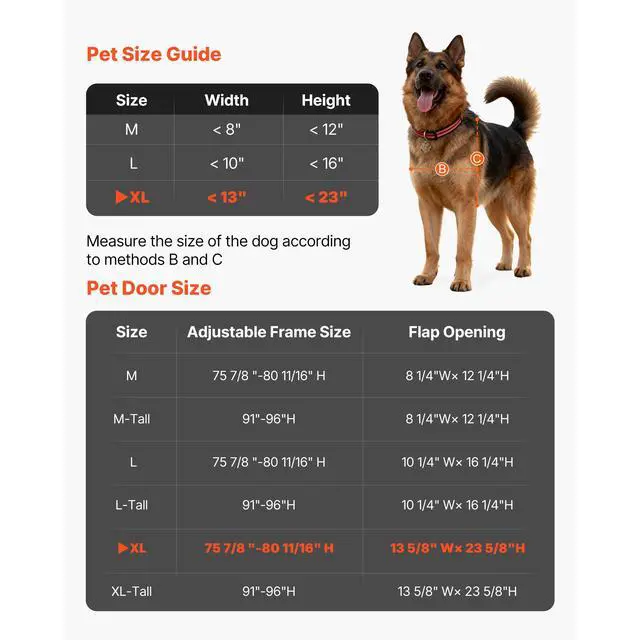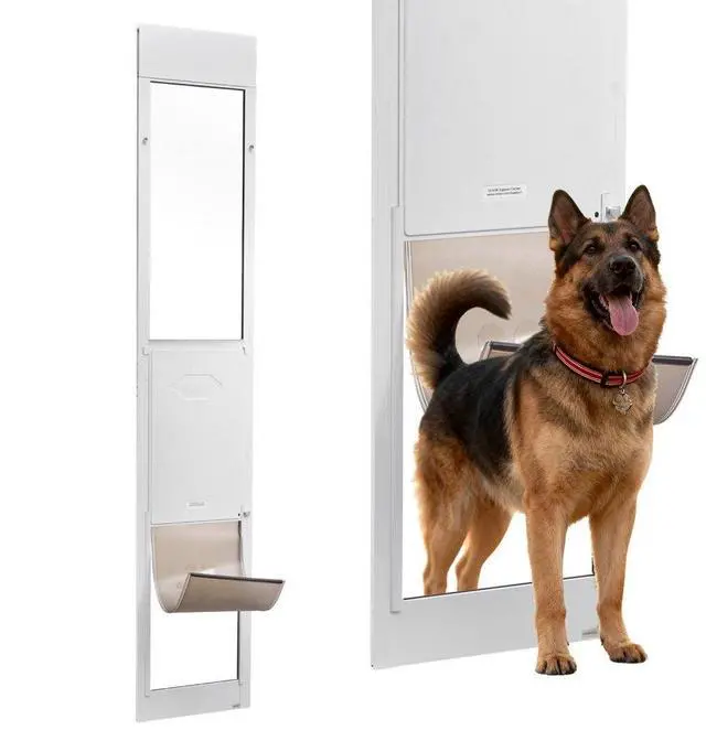 VEVOR Dog Door for Sliding Glass Door, 91 to 96 in Adjustable Height, Aluminum Alloy Frame with Metal Rotating Hinges, Lock Design, 13 5/8 x 23 5/8 in Flap, Sliding Glass Pet Door for Renters