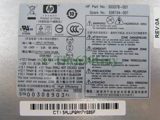 320WModels: HP-D3201A0, DPS-320JB-A, PS-4321-9HA, PS-4321-9HP, PC-8026Part