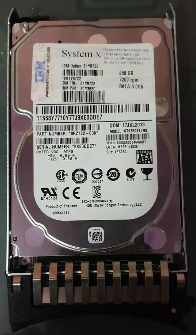 IBM 81Y9723 250Gb 7200Rpm 6Gbps Nl Sata 2.5Inch Sff Hotswap Hard Disk Drive With Tray