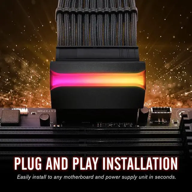 90 Degrees right angle design, connecting between PSU 24 Pin Cable and motherboard connector, does not cause pressure on the motherboard connector for long-term stable use.