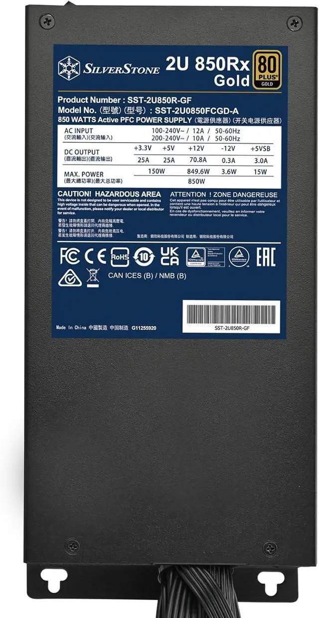 80 PLUS Gold 850W 2U Single Fixed cable power supply
