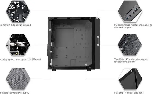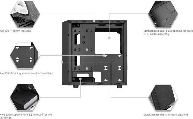 Aimed at users with demand for an affordable Micro-ATX tower chassis with compact dimensions and outstanding cooling potential, Silverstone created the precision Series PS15 to match or exceed those expectations. Despite its clean and simple appearance, The PS15 has design features that match those in the mainstream high-end chassis such as extra-large CPU back plate cutout on motherboard tray, all black interior, dual USB 3.0 Type A ports, easily accessible filters, tempered glass side panel (g & GP versions only), optimized airflow layout, and plenty of room for fans and liquid coolers.