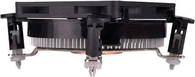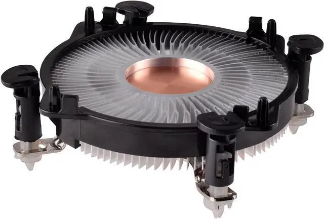 SilverStone Technology's Nitrogon NT08-115XP is a super slim profile CPU cooler designed for space limited super slim cases such as SilverStone VT01 for Intel Mini-STX platform. It has a true, solid copper center and base with extruded aluminum fins for superior thermal conductivity for up to 65W. The custom super slim 80mm PWM fan can maintain low noise during operation. With a total height of 33mm tall and push-pin design for easy installation, the NT08-115XP is an excellent upgrade for any low-profile system on Intel LGA1150/1151/1155/1156 platforms.