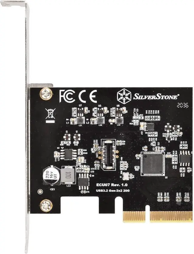 SuperSpeed USB 20Gbps / internal USB-C Key-A 3.2 Gen 2x2 PCIe expansion card. Includes optional low profile slot cover for supporting low profile cases. Remark : * User should confirm which OS version support xHCI driver natively. * If your operating system is incompatible with the expansion cards developed by SilverStone, such that your device can not be detected or recognized, please update your motherboards driver or BIOS to the latest version. You may also try executing compatible mode in your operating system and select previous versions of operation system to install driver required by the expansion cards. * if the transfer speed cannot reach the 20Gbps, please check the below items 1.PCIe version of motherboard 2.Key-A cable lanes, 20Gbps transfer speed must have 2 lanes cable 3.Key-A cable quality and cable length (internal + external cable)