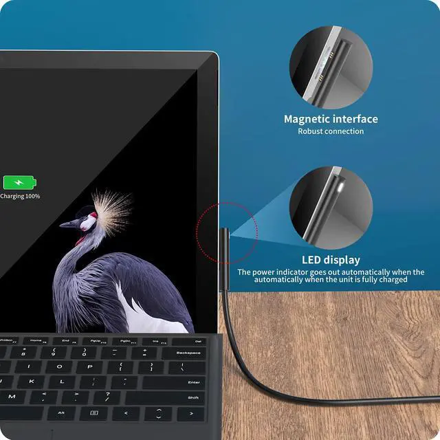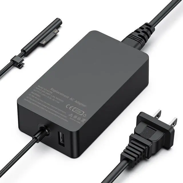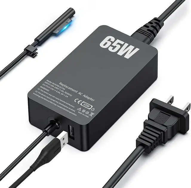 USB charge port: 5V 1A 5W. 65W Microsoft Surface Pro Charger for Surface Pro X Charger, Surface Pro 8 Charger, Surface Pro 7 Charger, Surface Pro 6 Charger, Surface Pro 5 Charger, Surface Pro 4 Charger, Surface Pro 3 Charger, Surface GO Charger, Surface Laptop Charger, Surface Laptop2 charger, Surface Laptop3 charger, Surface Book charger, Surface Book2 charger ? [Wide Compatibility] -- 65W Microsoft Surface Charger for Surface Pro X charger, Surface Pro 8 charger, Surface Pro 7 charger, Surface Pro 6 charger, Surface Pro 5 charger, Surface Pro 4 charger, Surface Pro 3 charger, Surface GO1 charger, Surface GO2 charger, Surface Laptop charger, Surface Laptop2 charger, Surface Laptop3 charger, Surface Book charger, Surface Book2 charger ? [Safety and Reliable] -- 65W Microsoft Surface Charger provide overheating protection / short circuit protection / overload protection. With special magnetic interface, with power status indicator, when fully charged, we can see full power state on our computer. ? [Extra USB Charge Port] -- 65W Microsoft Surface Pro Charger Quick charge for your Surface devices, through the extra USB charge port, you can also charge another device at the same time, for