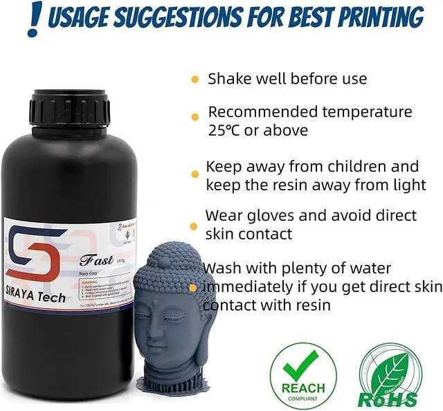 High Precision and Low Shrinkage: Siraya Tech 3D printing resin is the choice of many professional model lovers. This UV resin has volume shrinkage during the curing process, brings a smooth surface and high resolution to the printed model, and is an excellent choice for 3D precision printing.