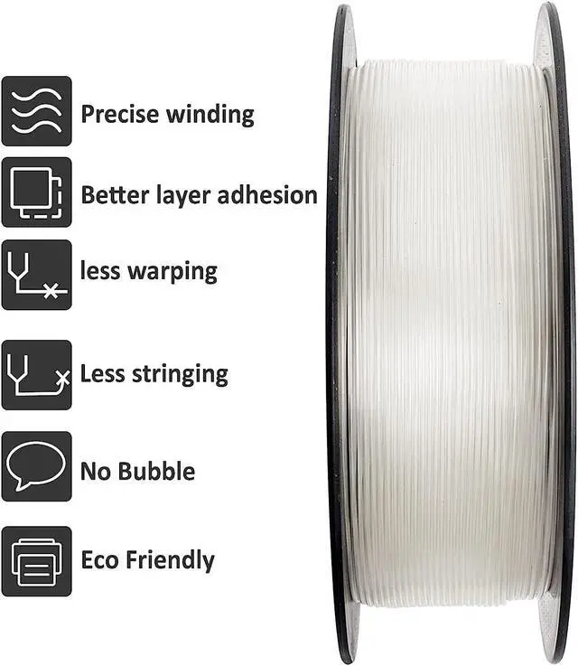 Less-tangle and Easy-to-UseFull mechanical winding and strict manual examination, to make sure the PLA filament line tidy and less-tangle, so as to avoid possible snap and line breaking; Larger spool inner diameter design makes feeding smoother
