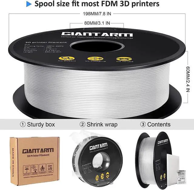 Clog-free & Bubble-Free- Completely dried for 24 hours before packaging and vacuum sealed with desiccants in nylon re-bag, enable much smoother and more stable printing. Since the PLA filament is prone to moisture, please store it into a re-sealable aluminum foil bag after unsealing to maintain excellent printing performance.