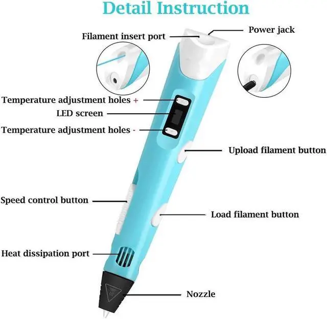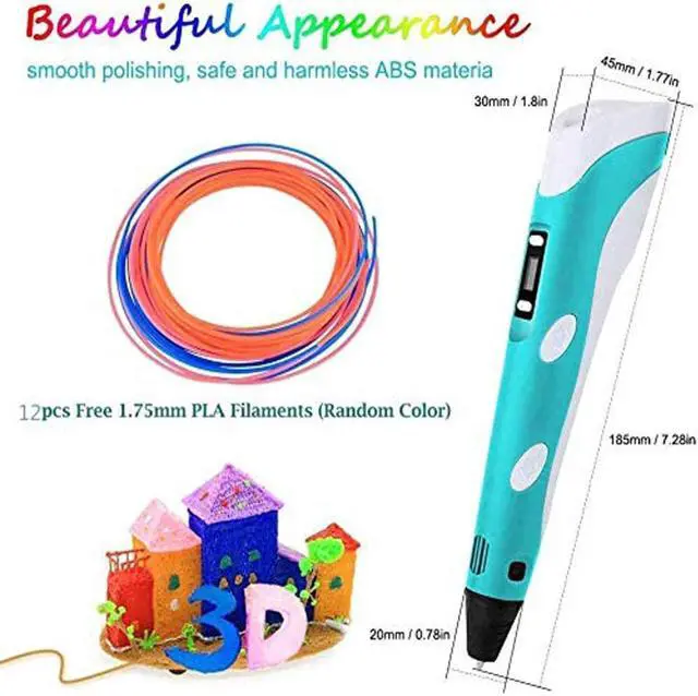 HIGH QUALITY 3D PEN 3D drawing pen is made of eco-friendly ABS material. It is equipped with 12 color PLA filaments made of non-toxic and non-irritating green material. You can use it with peace of mind without worrying about environmental pollution. The dual heat dissipation feature at the nib prevents you from getting burnt during use.