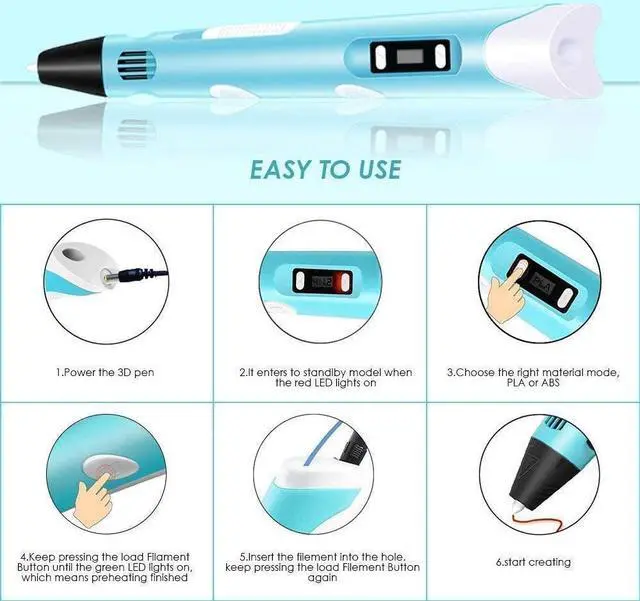 EASY TO USE & MUCH SAFER Featured with one button control for drawing as easy as writing, simply plug-in, heat up, automatic feed and extrude. Great for beginners and experienced artists/ 3D enthusiasts.