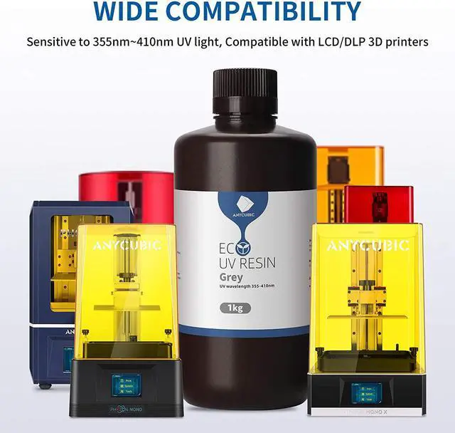 Wide compatibility: Sensitive to 355nm~405nm UV light. Compatible with most LCD/DLP 3D printers.
