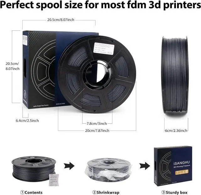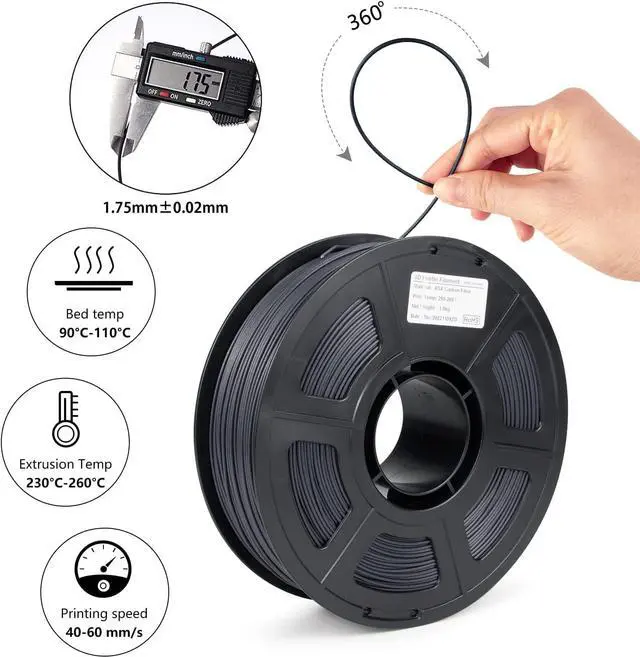 Improved Printability and Matte Finish: Combining High-Modulus Carbon Fiber (not carbon powder or milled carbon fiber), this carefully formulated blend ensures the filament is easy to be fed and printable and makes the final print look very smooth and high quality. Our filament 3d printing materials Work perfectly with most FDM 3d printers on the market, such as MK3, Ender 3, Monoprice FlashForge and etc.