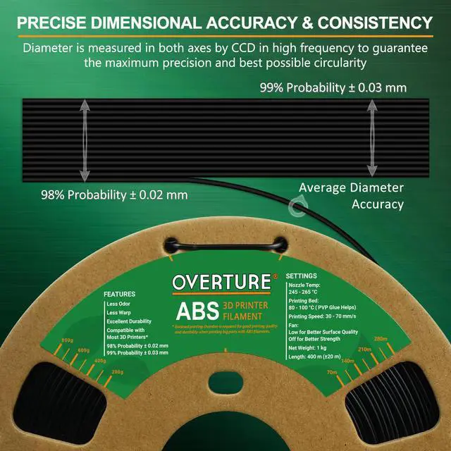 Note: The recommended print setup for Overture filaments could be slightly different from other filaments; Pls read the description below, you may also get some practical suggestions through QA/ Top Review from others.