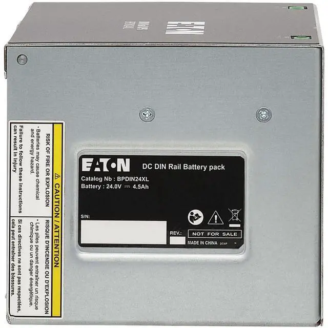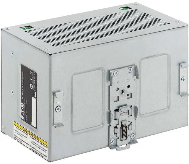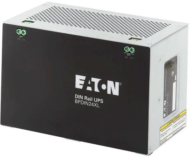 Provides extended runtime for compatible UPS systems in industrial, process, automation and machine control enclosure applications. Features | Backup Battery Module Gives Your Compatible UPS System Extended Runtime The BPDIN24XL offers extended battery runtime when used in conjunction with Eaton's DIN24240DC and DIN24480DC UPS systems. It can also be daisy-chained for a maximum of four matching EBMs to deliver Supports Easy DIN Rail InstallationThis extended battery module supports mounting in industrial, process, automation and machine control enclosure applications using the integrated 35 mm DIN rail mounting clamp.